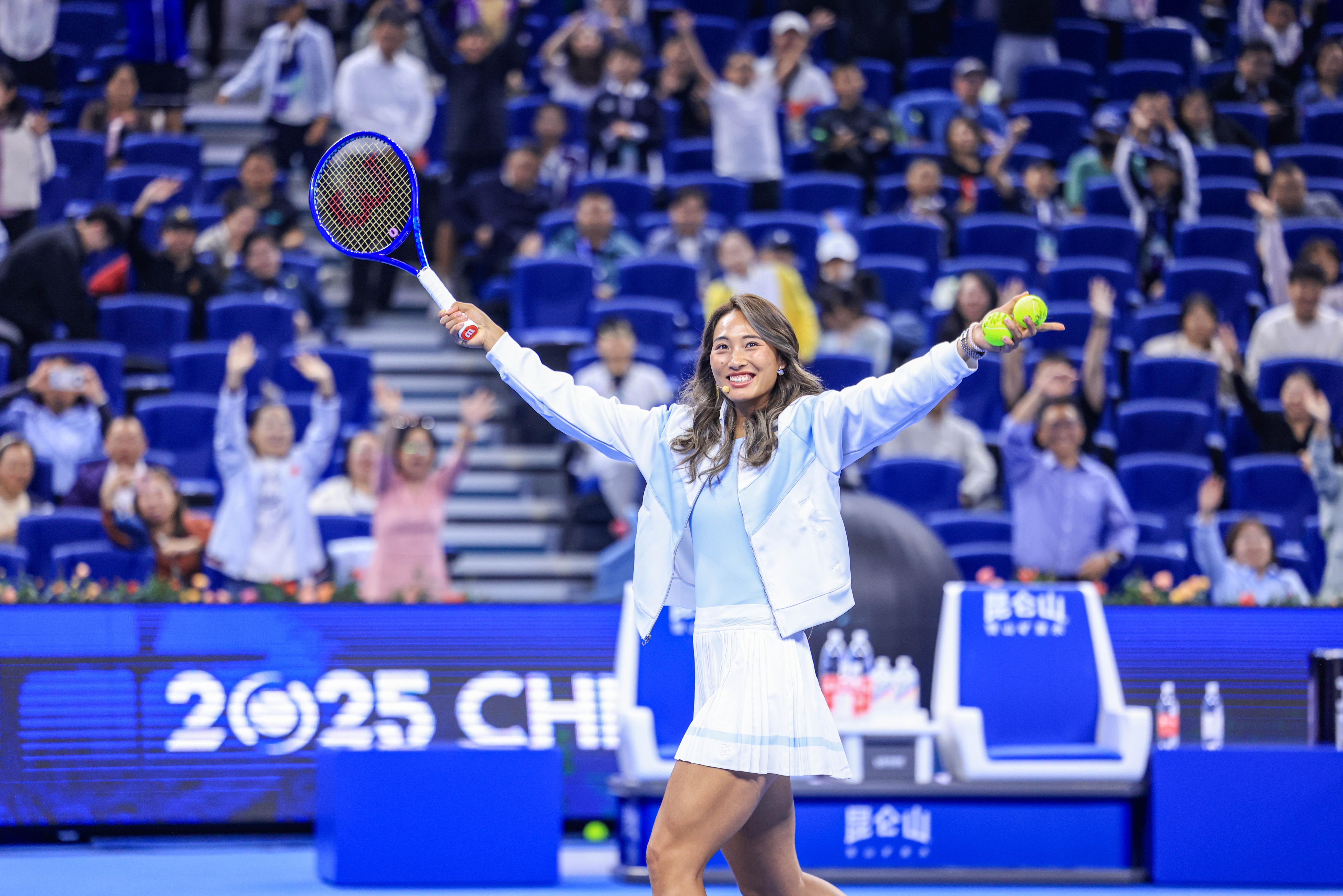 9月23日,2025中国网球公开赛启幕式在国家网球中心钻石球场举行。在“中国网球之夜”环节,备受关注的郑钦文现身启泰网,引发阵阵掌声、欢呼声。